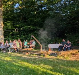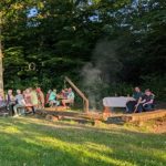 Am fortgeschrittenen Abend verlagerten sich Gespräche, umgeben von Glühwürmchen, auf die Plätze am Lagerfeuer.
